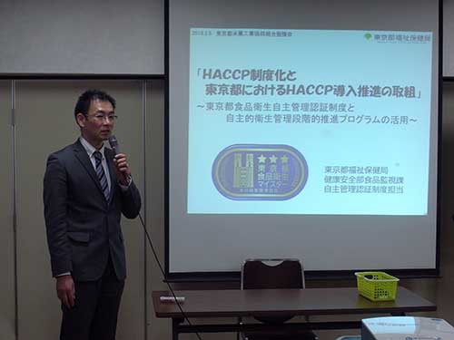 2月5日(月)、中小企業会館にて、東京都福祉保健局 倉持先生による「HACCAP制度化と東京都におけるHACCAP導入推進の取組」と題した勉強会が開催されました。