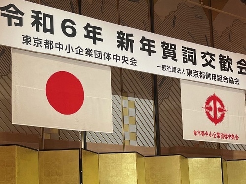 新年賀詞交換会には約400名が参加、小池知事や甘利明衆議院議員など多くの来賓もおこしになる中、受章者が1名ずつ紹介され、中央会からは受勲を祝して記念品が贈呈されました。